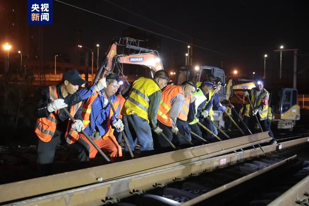 当天,施工单位共投入300余人和2台大型养路机械、20多台小型机具,完成了1组大号道岔插铺施工任务,同步安装、调试信号及接触网设备