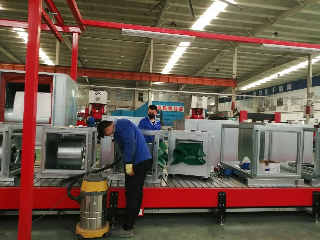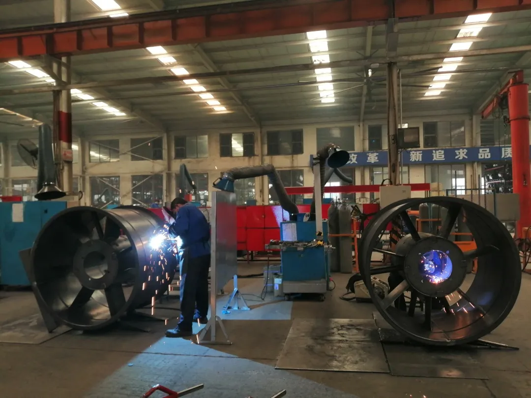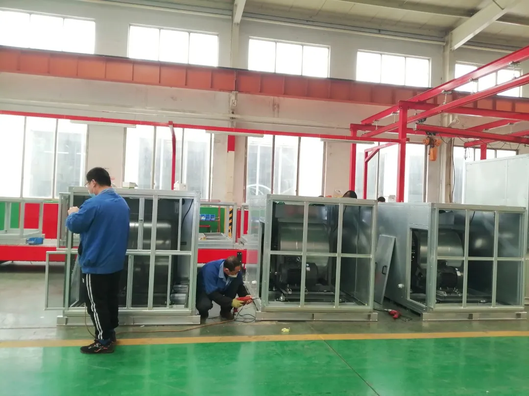 生产现场图因项目特殊性,所需风机须在4月上旬完成供货,时间紧任务重,生产工作人员加班加点完成供货任务,同时制定质量计划,严格抓好产品质量,保证生产进度和产品质量目前,首批货物已生产完毕,于今日发往雄安新区。