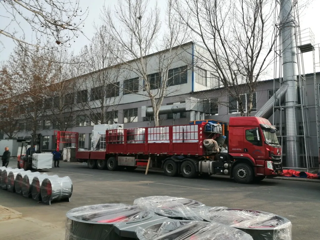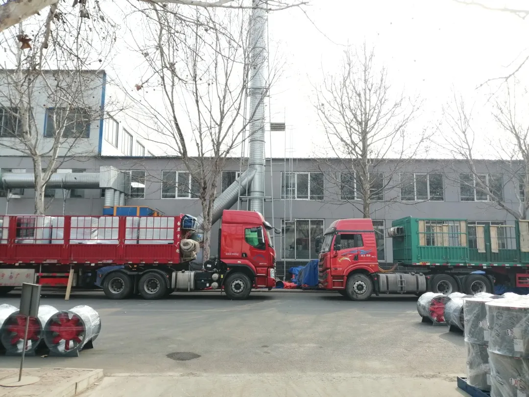 发货现场图轴流风机、风机箱、混流风机为主要采购产品,其中,离心式消防排烟风机为主要采购风机型号。根据甲方要求,格瑞德工作人员对风机风机箱尺寸进行了优化,有效地满足现场需求,赢得了甲方的肯定与称赞。