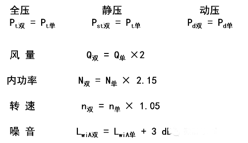 风机的并联运行目前并联双风机尚无统一的测试标准,并联双风机的性能往往是通过单风机的性能计算出来的。其计算公式如下:
