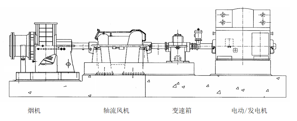 轴流式主风机的型号为AV50-14,由陕西鼓风机厂设计制造;烟机型号为YL-7000F,原由兰州炼油机械厂生产制造,后由成都成航发工艺有限公司改造使用高效叶片后烟机由原来耗电量300-500KWh变为发电量300-700KWh;后来将烟机改造为一级半形式,发电量达平均约800KWh。