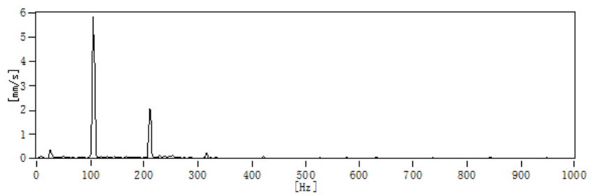 用HY106便携式振动仪测量现场壳体并分析频谱:测量信息所属部门:三催化车间设备编号:烟机测点编号:速度 水平测点采样时间:2019-03-26 17:47:06测量值:4.50 mm/s时域波形