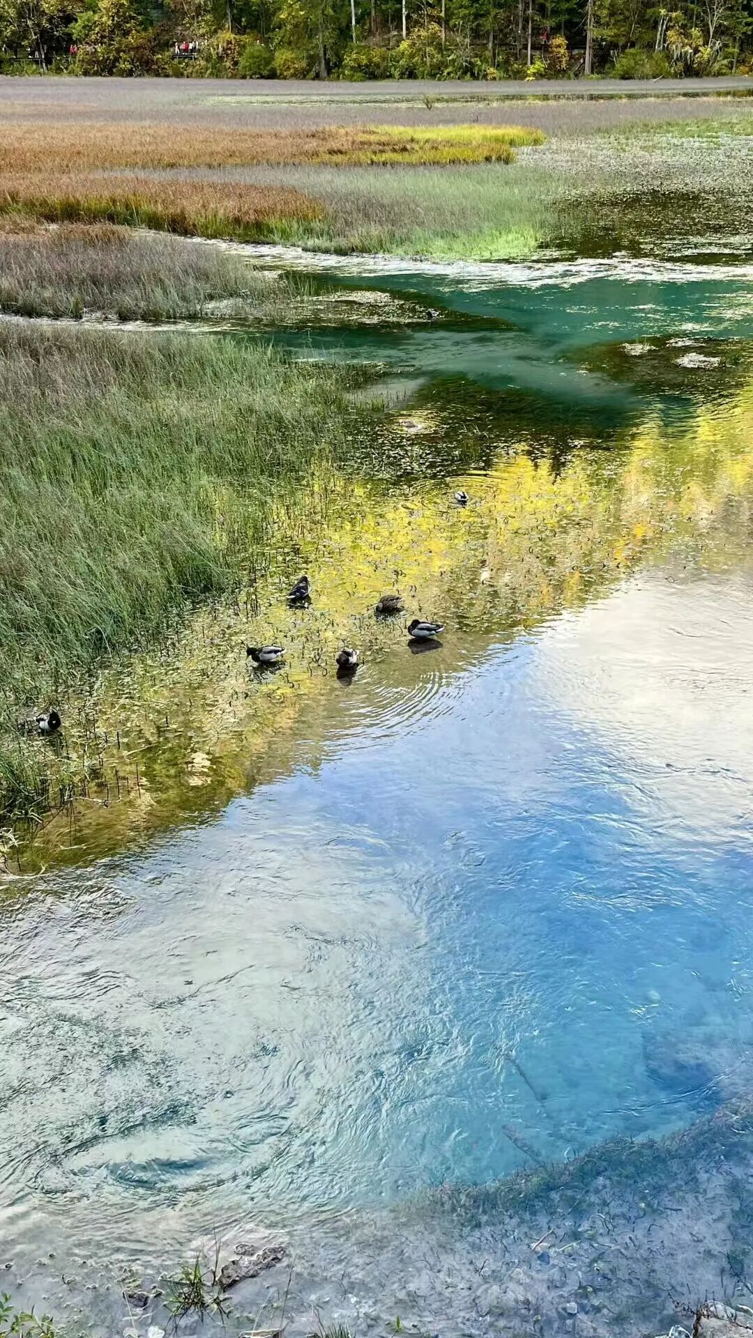 加六六微信获取更多旅游资讯,更多小众目的地,做你旅行路上的指路者&避坑者目前有红叶的地方不多,更多的是黄叶卧龙海,火花海和镜海附近稍微有几棵红叶树,可以配合着湖水一起拍五花海稍微有一些相对集中的红叶,加上湖底颜色的变化,五花海确实是九寨沟最精华的部分。