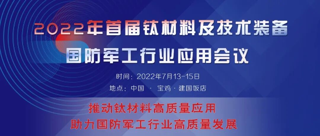 经过本轮突如其来的疫情风暴和攻坚战,在目前情况日渐稳定和向好的前提下,组委会现暂定于7月召开“首届钛材料及技术装备国防军工行业应用会议”具体信息如下:会议时间:2022年7月13-15日会议地点:陕西宝鸡 · 建国饭店。