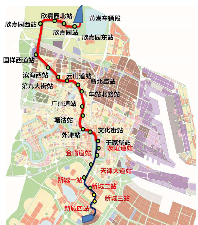 轨道交通B1线轨道交通B1线一期工程,建设规模为31.5公里,线路北起黄港欣嘉园以东的黄港车辆段站,经欣嘉园南路、海德路、云山道、河北西路、河北路、上海道、堡兴路,止于中部新城四站,全长31.5公里,共设车站22座。