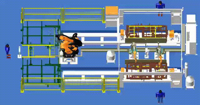 为了顺利模拟真实的工厂环境,帮助提升机器人在实际应用中的效果,我们通常会进行机器人3D场景的建模以及环境变化控制,去逐一分析机器人的姿态动作、移动路径、搬运时间、装载方式等,找出最优工作路径。