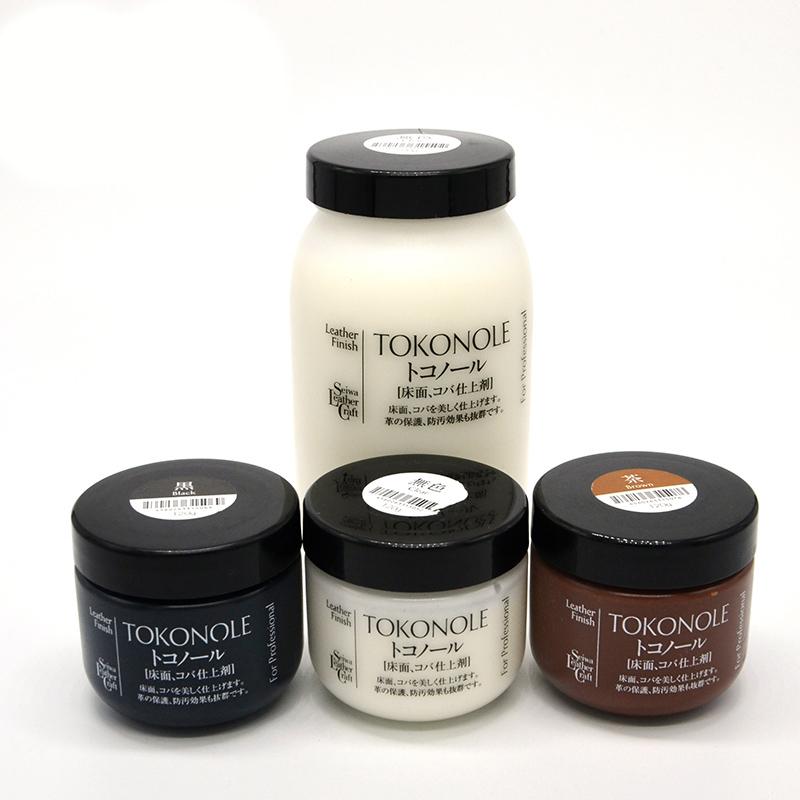 又称光亮剂,主要为树脂成分和油脂,在皮革染色后或皮具完工时使用,可以形成一层极薄的透明膜体,填充皮革上肉眼难见的坑洼,提高皮面平整度并折射一部分光线,使皮革上的颜色更鲜艳,皮面的反光度更好,也有一部分养护皮面的功能。