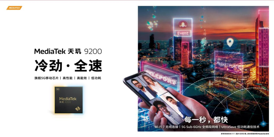 天玑9200的图形性能和能效史无前例的提升,以及硬件级移动光追技术的实现,已经使其在该领域拥有了引领性的实力在通信技术方面,天玑9200支持高速5G网络以及即将到来的Wi-Fi 7无线连接,并配合多种智能场景实现“无缝连接”;在蓝牙连接技术上,天玑9200支持新世代蓝牙音频 LE Audio,综合抗干扰能力更强。