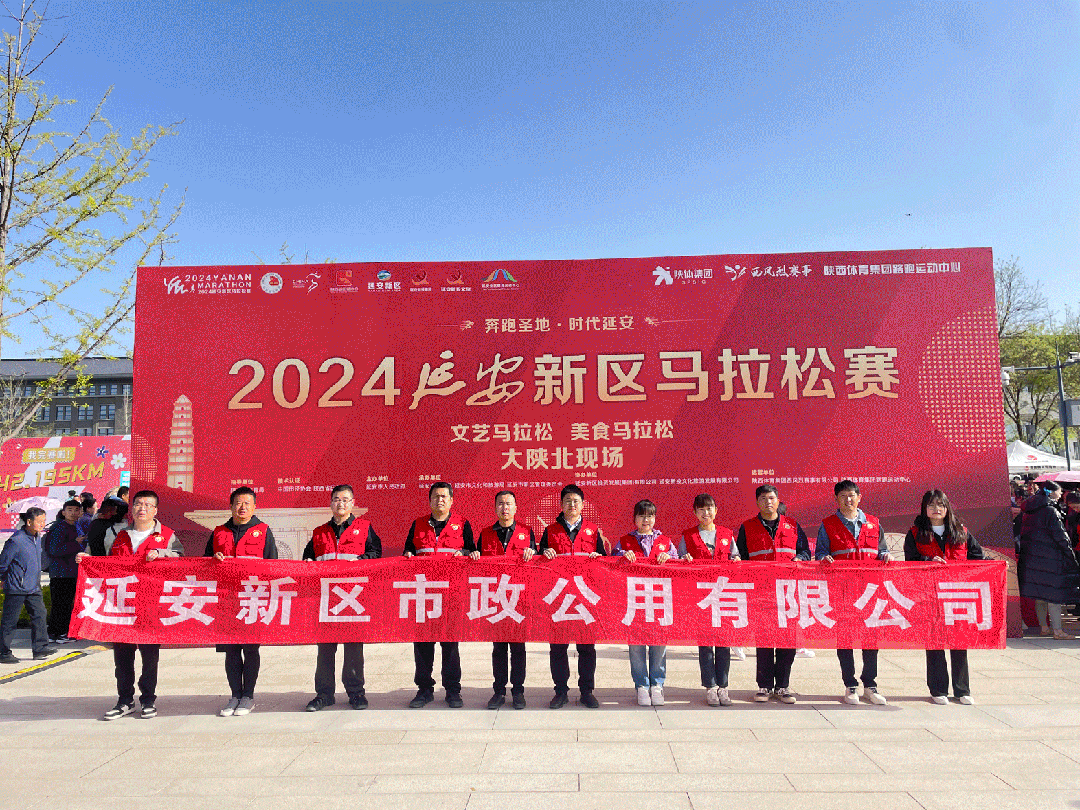 本次延安新区马拉松赛,市政公司全力以赴,不断优化保障措施,实现了42.195公里赛事沿线道路环卫保洁全覆盖,圆满完成了此次环境卫生保障任务累计安排志愿者50余人,出动环卫保洁人员240人次,垃圾收集车4辆、。