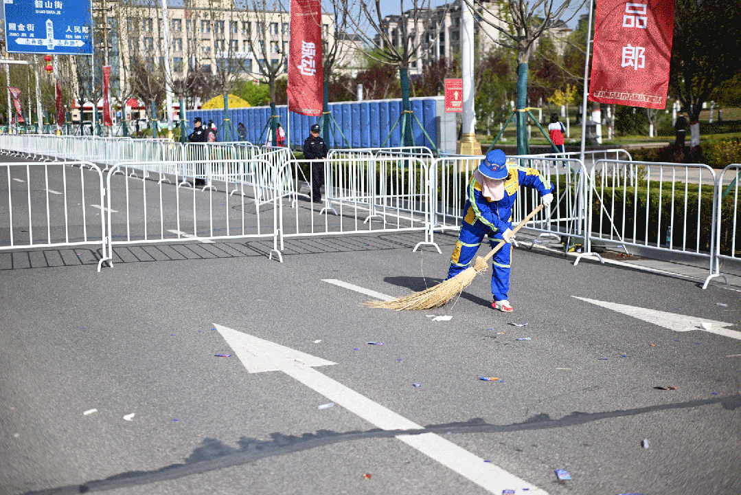 02环卫保洁比赛结束后,市政公司城市环境服务分公司迅速集结环卫保洁力量,对赛区所有道路进行快速清理针对机械无法作业的死角、集合点、沿途补给站内的残留垃圾,安排环卫人员及时清理收运,使赛道附近的环境卫生在最短时间内恢复干净整洁。