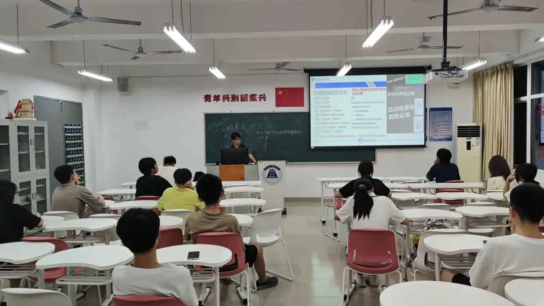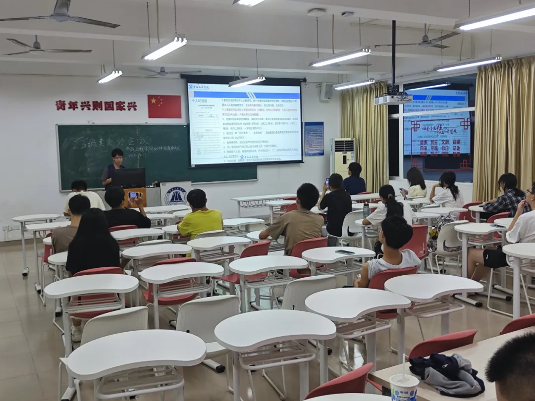 为详细讲解市政工程学院学生素质分细则(十四版)内容,进一步推进学院素质教育,鼓励学生积极进取、力争上游、全面发展,市政工程学院纪律检查委员会于2024年10月16日在从化校区A9-202教室召开素质分会议。