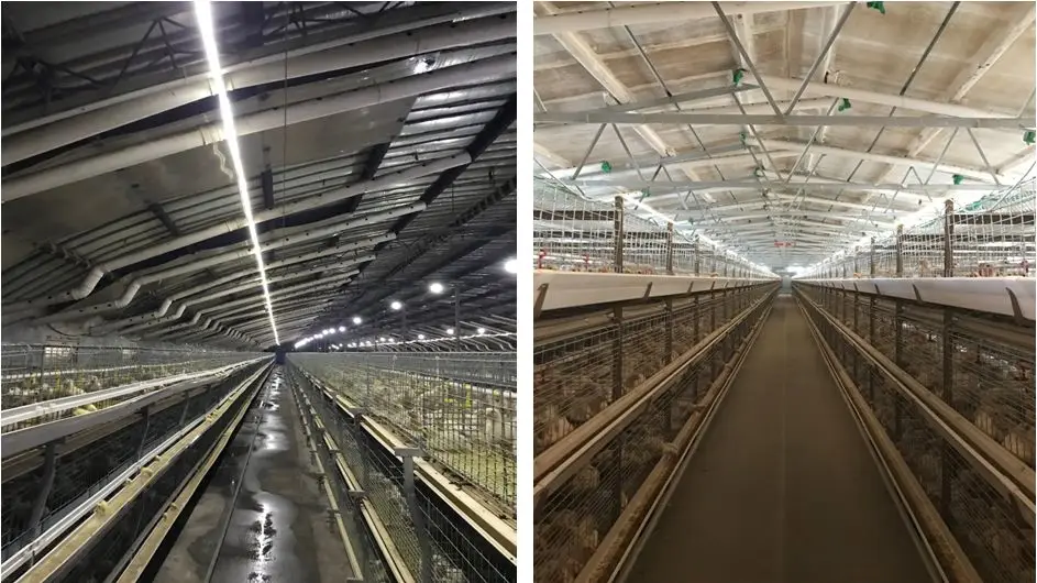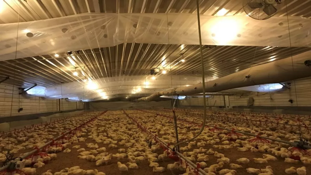 风机和进风窗相互匹配,风机拉的动,拉的透,鸡群能承受鸡背风速;通风量的大小取决于空气质量;最小通风操控的关键,就是要确保进来的冷空气吹到鸡舍顶棚中间,与蓄积在此处的热空气充分均匀的混合,之后下落带走鸡舍内湿气。
