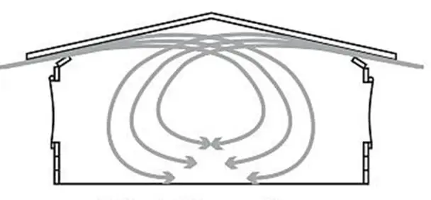 4.设置最小通风:最小通风通过2到6个36英寸侧墙风机或1-3个山墙大风机和两侧进风窗来实现;维持一定的负压,能满足均匀通风的情况下,负压越小越好,不要让负压成为养鸡的负担;时刻关注有效通风,即鸡舍任何一处的空气质量均匀一致;