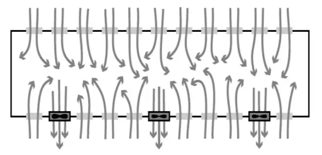 而最能够达到此目标的设置方式,就是利用风扇排风造成负压,从边墙可调节开口大小的进风口进气,来调整进气量;一般舍内的静压约为0.05-0.10英寸水柱,可以均匀一致的由各个进气口注入空气,再充分与舍内空气混合;负压每增加0.01英寸水柱,进风口风速增加0.6米/秒。
