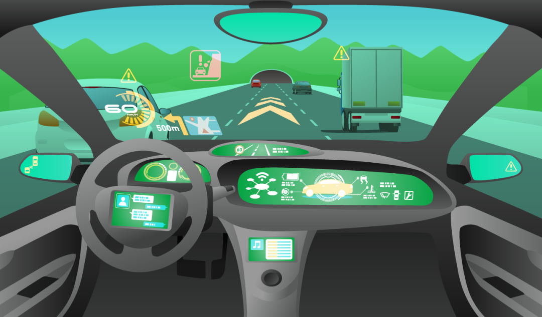 行车导航如今结合了AR等技术后出现了如AR-HUD增强现实抬头显示系统;在车辆的前挡、后挡或侧挡风玻璃上显示多种信息中实现CV2X(Cellular Vehicle to everything)交互,并配合传感器感知周边环境,当出现风险情况时自动进行紧急制动,使行车安全更有保障,这也是自动驾驶技术的组成部分。