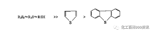 如硫芴的反应活性较噻吩约低一至二个数量级,硫化物的一般反应活性顺序如下: