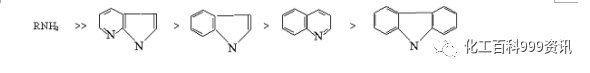 图1 硫芴加氢反应历程图2、模型氮化物的加氢脱氮反应历程氮化物的加氢脱氮反应活性,同样也随着分子结构不同而有很大差别,其一般顺序为: