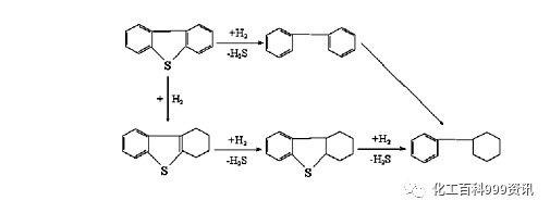 2S和联苯;(2)其中一个苯环先加氢,然后C-S键断裂生成H2S和环己基苯。第一条反应速度常数约比第二条高一个数量级,是主导路线。