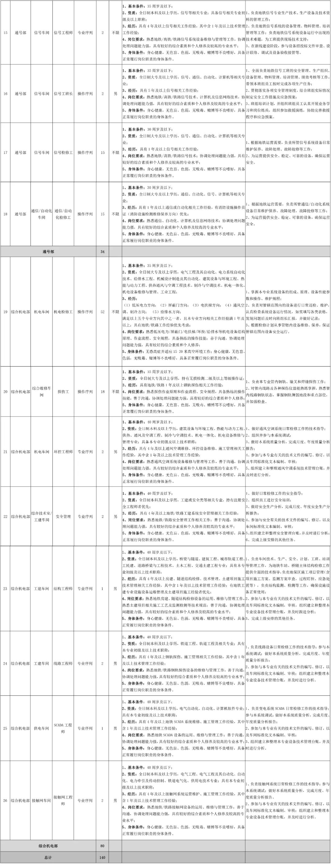 (2)35周岁及以下(1985年6月1日及以后出生);(3)30周岁及以下(1990年6月1日及以后出生)2、工作年限:核定至2020年6月30日止(实习经历不纳入核算)3、身高要求:考虑到公司对外服务形象的需要,站务类岗位和司机类岗位须对身高有要求,具体如下:。
