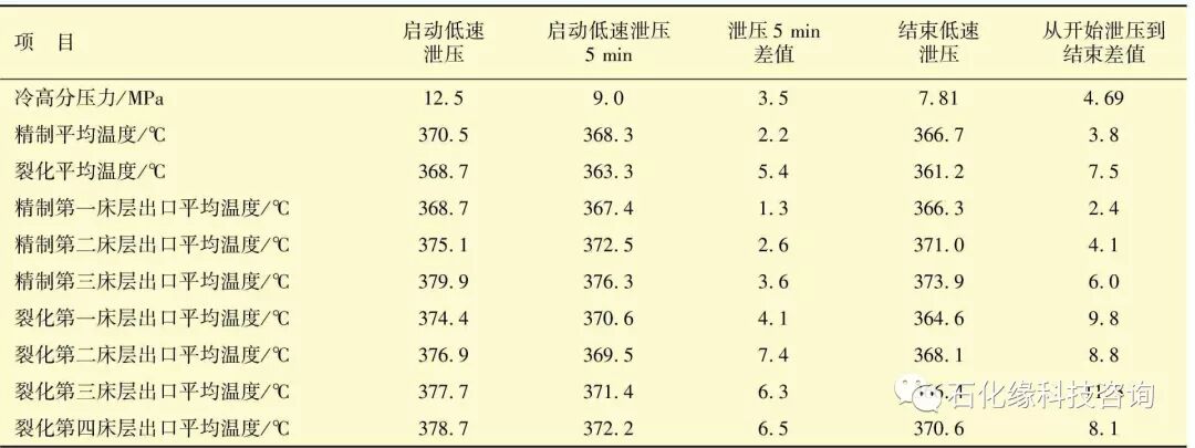 采用该处理方法优点是操作简单,风险低,缺点是启动紧急泄压可能会对反应器内构件与催化剂造成一定影响表1 冷高分压力与反应器床层出口温度(2018-08-10)