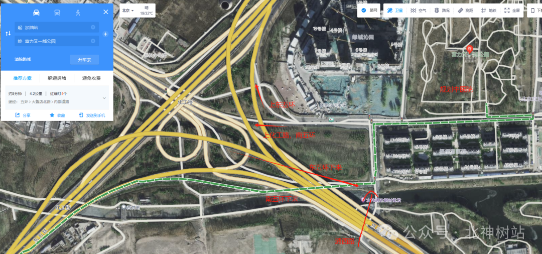 图片为邻居自制(仅供参考)通过地图可以看到,绿色为在南五环进入北京中医院(规划中)等黄厂地区,以及东五环下来的车流,汇于潞西路(目前我们董北路路线),加上该地区出行进入南五环,东五环,化工路以及来北神树电竞中心观看比赛(