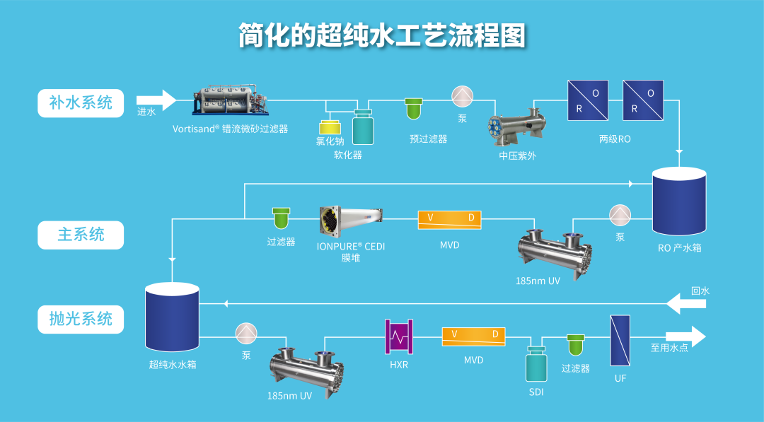 微电子行业正朝着无需化学品的超纯水生产方向发展随着技术的发展,反渗透 (RO) 和连续电去离子 (CEDI) 在微电子超纯水系统里越来越普遍地被采用,而不是使用传统的离子交换 (阳床、阴床和混床) 技术。