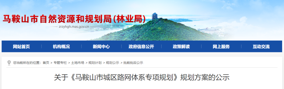 12月12日马鞍山市自然资源和规划局发布关于《马鞍山市城区路网体系专项规划》规划方案的公示