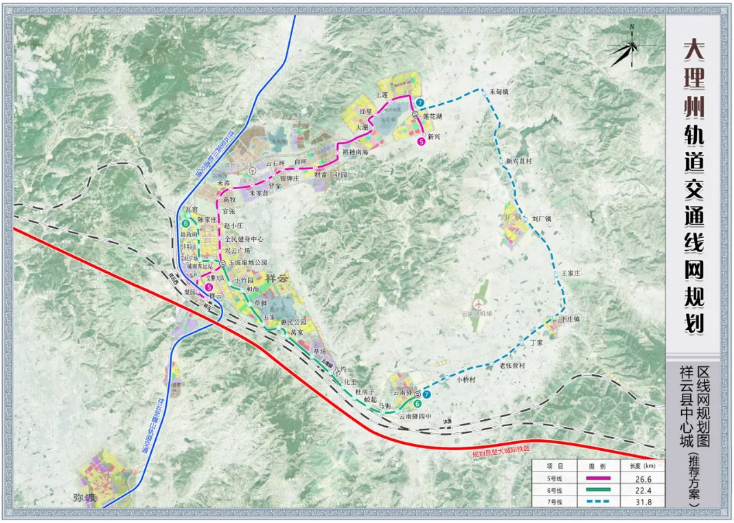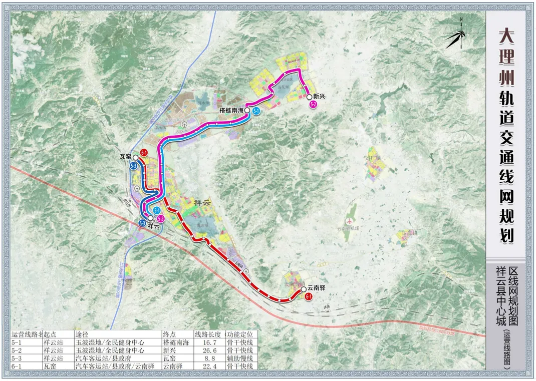 大理城市轨道交通5号线位于祥云县:起始于广大铁路复线祥云站,止于宜居新区新兴村,全长26.6km,设车站23座,是一条产城融合发展线。