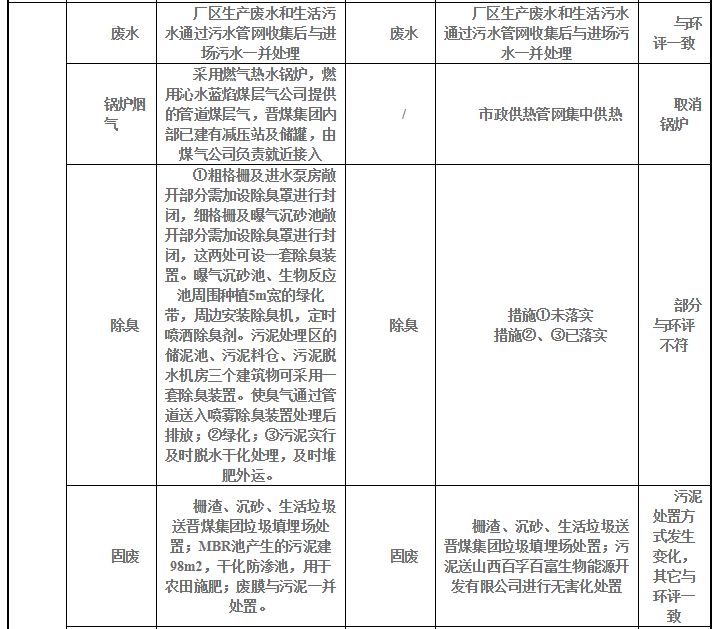 4、固体废物栅渣、沉砂池泥沙、生活垃圾定期清理,由垃圾桶收集封闭暂存,及时运往晋煤集团生活垃圾填埋场填埋污泥由晋城市驰锐工贸有限公司运往山西百孚百富生物能源开发有限公司进行无害化处置5、辐射不涉及6、污染物排放总量