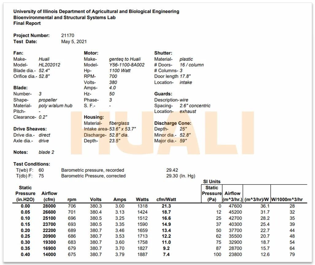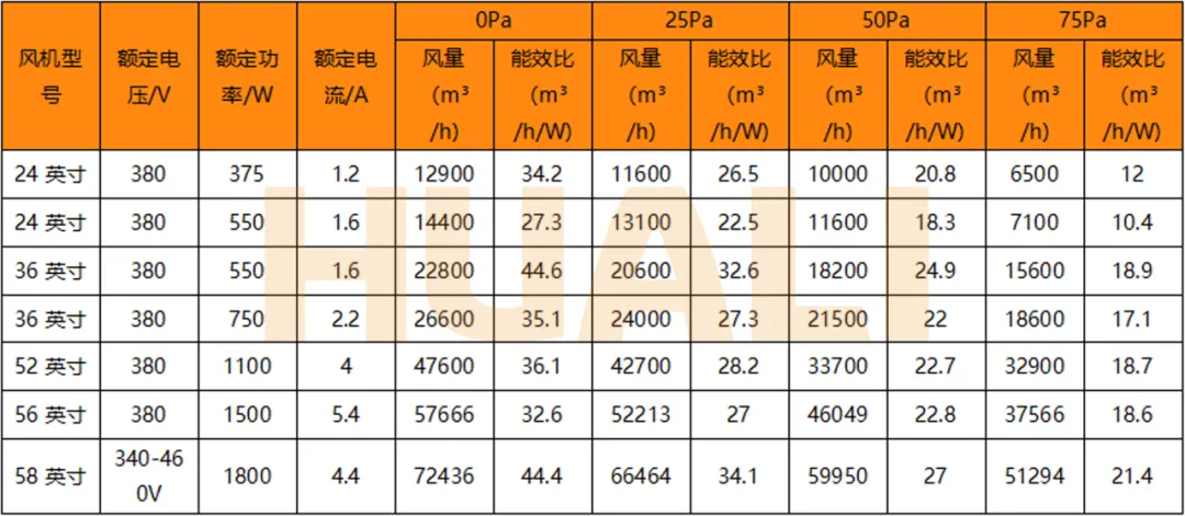 华丽科技全新一代玻璃钢风机系列主要有24寸、36寸、52寸、56寸、58寸多种型号,满足猪场各种使用环境,风量和能效达到行业领先水平36寸风机在无负压情况下,风量高达22800 m³/h,能效比高达44.6 m³/h/W;52寸风机在无负压情况下,风量高达47600 m³/h,能效比高达36.1 m³/h/W。