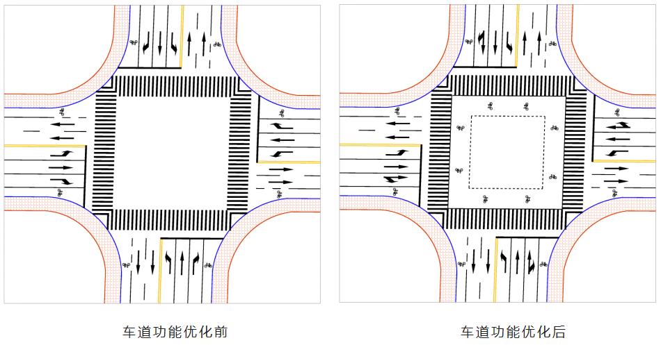 三是,车道功能与流量不匹配。交叉口在分配车道功能时,未考虑近远期流量变化及实际交通组织流线,导致交叉口进口车道功能设置不合理,影响路口通行秩序。