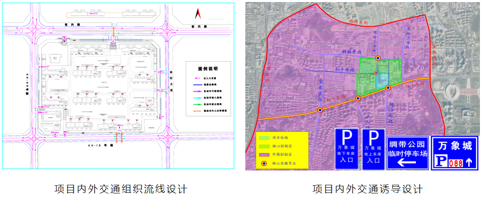 项目内部交通组织优化前后情况对比二是,项目内部交通设施设计不合理交评报告中往往忽视了项目内部的标志、标线、广角镜、隔离护栏等交通安全设施的设计工作,导致后期投入使用时内部交通秩序混乱、车辆乱停乱放、存在视角盲区等情况发生。