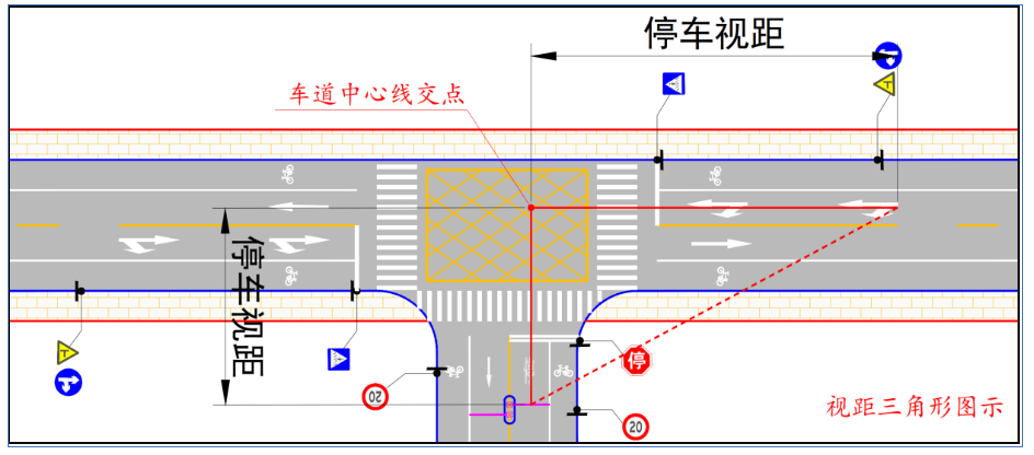 出入口视距三角形示意图(二)交通组织设计方面建设项目投入使用后的新增交通需求会对周边交通产生影响,需根据拟建项目所产生吸引的交通量及项目出入口的布置对周边道路进行交通组织设计工作,确保其安全、有序在审查过程中,发现项目交通组织层面主要存在以下几个方面的问题。