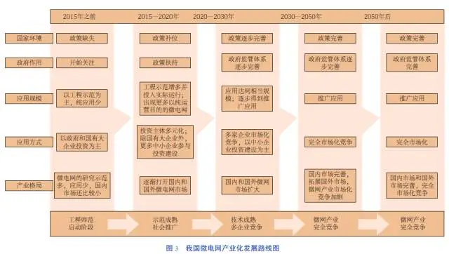 2030 年微网技术能够基本成熟,走向商业化,具体各技术方面发展预测如图 2 所示。