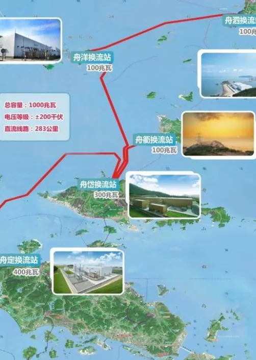 舟山柔直是世界首个多端柔直输电技术示范工程,2013年3月开始施工,2014年7月正式投运该工程共建有舟定、舟岱、舟衢、舟泗、舟洋5座换流站,形成“五端”互联,总容量100万千瓦,在舟山岛际间架起了一个直流互联网,为舟山北部诸岛和鱼山绿色石化基地提供重要电源支撑。