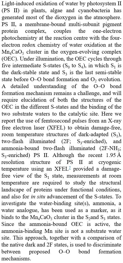 Structure of photosystem II and substrate binding at room temperature室温下的光系统II结构及底物结合机制Iris D. Young, Mohamed Ibrahim, Ruchira Chatterjee…Vittal K. Yachandra & Junko Yano