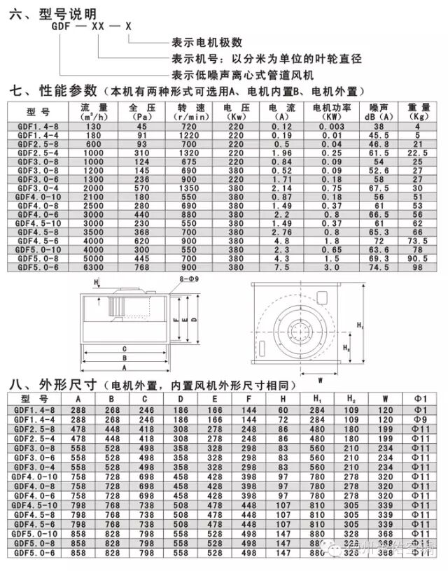 可作为国外同类产品的替代品.一特点 GDF系列离心式管道风机,系本公司吸取国外先进技术的基础上加以改进制成的新型产品,该产品可直接与风管连接,性能好,运行平稳人,噪声低,结构合理紧凑,安装方便,是九十年代填补国内空白替代进口产品。