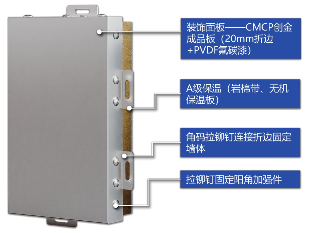 3.金属面板保温装饰板应使用热压工艺制作4.保温装饰板应采用点框方式粘贴方法,粘结面积比不应小于85%,边角部位应满粘每层设置一道不锈钢托架,厚度不应小于 2mm锚固件所用锚栓应采用旋入式锚栓,锚固件数量:固定在混凝土墙体时应不少于9个/平方米,且不少于4个/块,固定在加气混凝土墙体时,锚固件数量不少于14个/平方米。