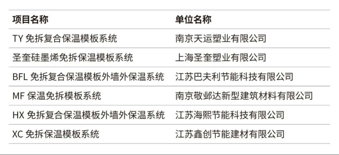 (第一批)围护结构免拆复合保温模板外墙外保温系统(6项)