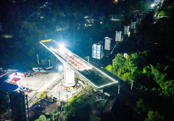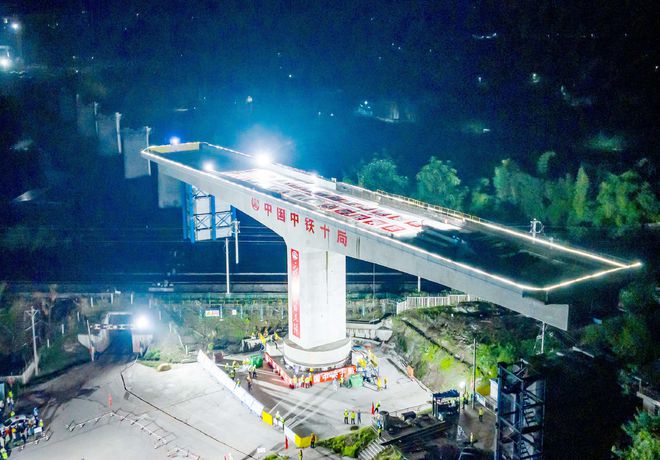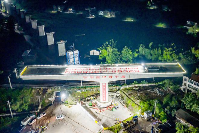2025年6月27日凌晨,经过110分钟紧张有序的“天窗”作业,由中铁十局承建的西渝高铁四川省广安段梅花坪临溪河特大桥T构转体施工顺利完成,标志着西渝高铁康渝段建设再次取得突破性进展。